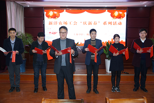 鞭炮聲聲辭舊歲,張燈結(jié)彩迎新年。2月11日下午,新洋農(nóng)場(chǎng)工會(huì)組織開(kāi)展才藝展示、摜蛋比賽、現(xiàn)場(chǎng)抽獎(jiǎng)等“慶新春”系列活動(dòng)。黨委書記陳守軍,場(chǎng)長(zhǎng)潘元海,紀(jì)委書記、工會(huì)主席戴學(xué)林,財(cái)務(wù)總監(jiān)謝翠英,場(chǎng)長(zhǎng)助理王煜明出席活動(dòng)現(xiàn)場(chǎng)并全程參與,機(jī)關(guān)全體工作人員參加了活動(dòng)。