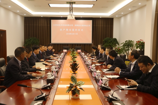 4月11日上午,江蘇省東辛農場有限公司與國網連云港供電公司在東辛賓館一樓會議室舉行資產移交簽約儀式。國網連云港供電公司黨委書記、副總經理吳旺東、副總經理藺華、東辛農場有限公司黨委書記、董事長、總經理韓中書、黨委副書記、紀委書記、監事會主席王信學、副總經理徐中兵、劉春利及雙方相關單位、部門負責人參加簽約儀式。國網連云港供電公司代表藺華、東辛農場有限公司代表王信學在資產移交協議上簽字。