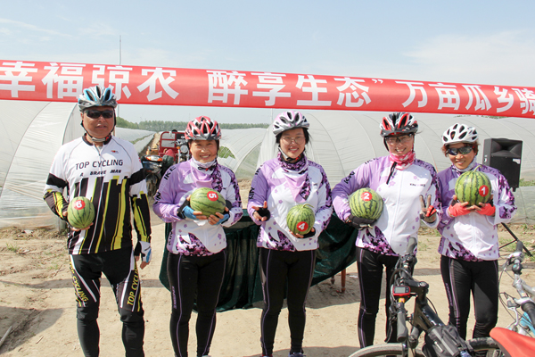 隨著公司黨委書記、董事長、總經(jīng)理王世伯打響的發(fā)令槍聲,20多名龍河騎行隊隊員身著統(tǒng)一服裝,精神抖擻,英姿颯爽,從農(nóng)和廣場出發(fā),圍繞“?農(nóng)”牌西瓜核心生產(chǎn)區(qū)進行健康騎行,全程共10.86公里。五月的農(nóng)場美景如畫,正是大棚西瓜和甜瓜收獲的季節(jié),在第三生產(chǎn)區(qū)大棚西瓜田頭,騎手們紛紛加入猜瓜游戲,誰猜的斤兩最接近,香甜的西瓜就歸誰,這場有趣的猜瓜游戲讓大家開心不已。在終點——有機農(nóng)莊,黃的農(nóng)友小蘭、紅的早春紅玉、翠綠的玉菇甜瓜讓干渴的騎手們大飽口福。