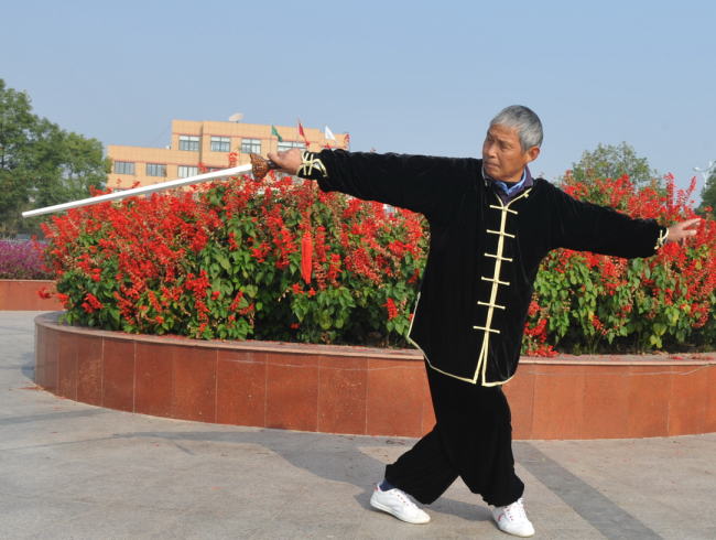 更讓林耀國欣喜的是,在練太極的過程中,讓他的生活更規律了,還在太極協會中結識了農場不少志同道合的拳友,相互之間達到直言不諱,無話不說的地步,讓林耀國的心情十分開朗。也正如兒子林志純所講的那樣,得了五六年的慢性支氣管炎竟然達到了忽視的地步。以前氣管炎每年就要住院治療1-2次,還不斷咳嗽、氣喘不息,自從練了太極以后,就沒有再發過氣管炎,并且感覺自己的身心開始變得輕盈起來。對這,在太極協會練太極,讓林耀國收獲了人生中最快樂的時光。圖為林耀國在打太極拳劍時的鏡頭。