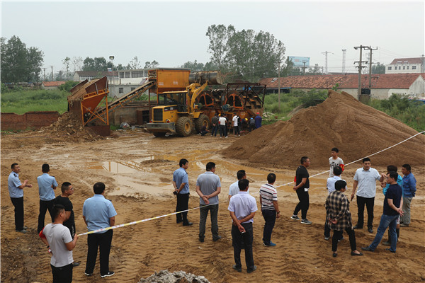 近期,經排查崗埠農場公司二總(1家)、百萬雞場(2家)、石粉廠(3家)、信鴿廠(1家)共有7家非法洗砂點,海州區李鋒區長要求,區各相關部門各家出具有執法標識車輛1輛;車上必配兩人以上執法人員,公安局要配備人員維持秩序。崗埠組織人員力量20人以上,用于維持秩序,安排專業人士拆除核心設備,拆完運走。各洗砂場想要回設備必須清理運走剩余設備和沙,再到環保局取單,方可領取設備。