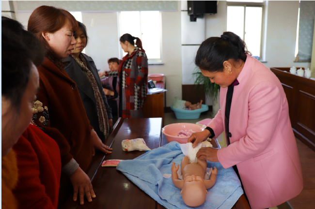 經(jīng)過農(nóng)場各級領(lǐng)導的關(guān)心和支持,我的干勁也很大,終于在2017年底前成功甩掉了貧困戶的帽子。圖為李海霞在去年在新洋農(nóng)場協(xié)辦的月嫂培訓班上的鏡頭。