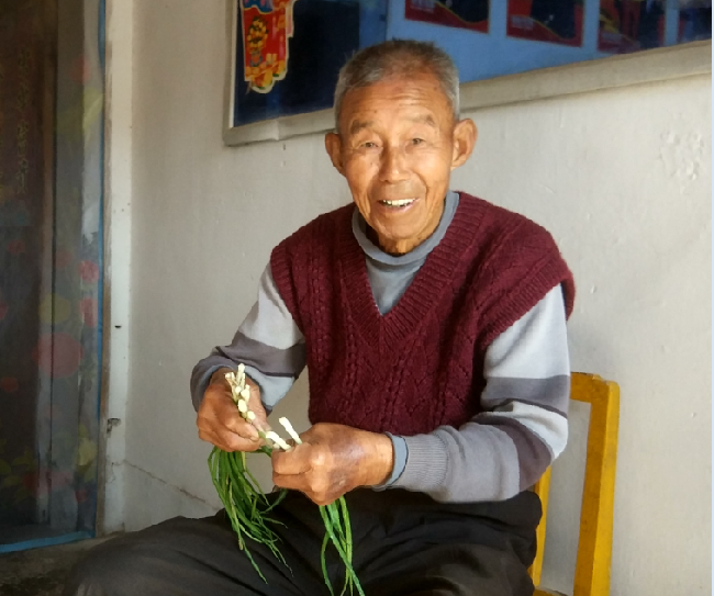 李朋友飲食比較清淡,少肉多素,油鹽也不多。每天下午2點(diǎn)左右,他會(huì)定時(shí)喝些兒孫們孝敬給他享用的腦白金、牛奶等營(yíng)養(yǎng)品。每月有近7000元的工資,想買什么就買什么,那么多子女一個(gè)也不過(guò)問(wèn),只是由著他怎么處理,但老人從不亂花瞎用。老人很會(huì)做人,也會(huì)討兒孫們的歡心,每當(dāng)他用存單積攢到6萬(wàn)元錢時(shí),就會(huì)6個(gè)子女一家1萬(wàn)地均分,讓兒孫們貼補(bǔ)家用。李朋友對(duì)子女出手大方,教育投入上一點(diǎn)也不含糊,一定要他們練好書,學(xué)會(huì)技能,所以他的子孫都在自食其力地工作,這讓李朋友很是欣慰。當(dāng)然,李朋友在兒孫中威望極高,逢年過(guò)節(jié)20多個(gè)子孫紛紛來(lái)到家中團(tuán)聚,給老人帶來(lái)孝敬的物品,為老人請(qǐng)安祝福,讓老人的晚年生活充滿了快樂(lè)!圖為李朋友老人在做晾被栽菜和擇菜時(shí)的鏡頭。