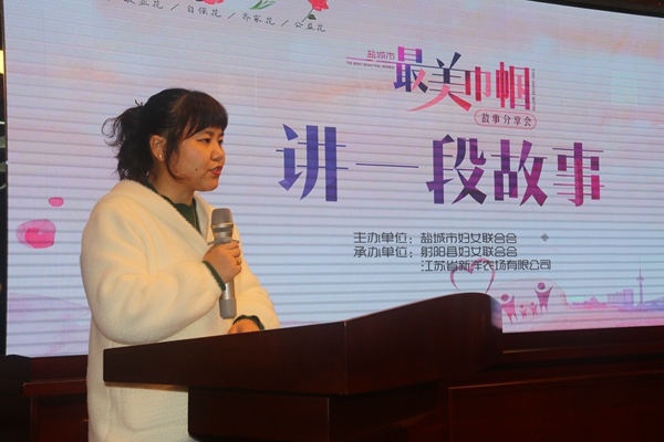 分享會圍繞鹽城市“最美巾幗•自強花”榮譽稱號獲得者——農場職工祁兆花展開,分為分享一首歌、分享一本書、分享一個故事、分享一個承諾、分享一個傳遞五個環節。