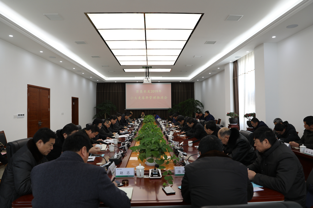 春寒料峭,梅顫枝頭。為推進(jìn)農(nóng)發(fā)公司小大麥返青期各項(xiàng)管理措施及時(shí)準(zhǔn)確落實(shí),加速在田苗情轉(zhuǎn)化升級(jí),確保夏糧豐產(chǎn)豐收,2019年2月16日,蘇墾農(nóng)發(fā)2019年小大麥春季管理推進(jìn)會(huì)(粘土片)在東辛召開。蘇墾農(nóng)發(fā)總裁助理陳培紅、種植業(yè)管理中心總經(jīng)理徐啟來,東辛分公司總經(jīng)理張康強(qiáng)、副總經(jīng)理陳躍武,云臺(tái)、崗埠、黃海等9家粘土片分公司副總經(jīng)理、分管基地領(lǐng)導(dǎo)、農(nóng)業(yè)中心主任共計(jì)36人參加了本次會(huì)議。