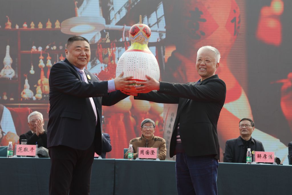 東辛知青藝術(shù)家,被譽(yù)為“金陵葫蘆張”的非遺傳承人張苗先生,為農(nóng)場(chǎng)專門創(chuàng)作了一件藝術(shù)作品——彩繪葫蘆。受張苗先生的委托,由知青代表李曉東先生向農(nóng)場(chǎng)贈(zèng)送彩繪葫蘆。東辛黨委書記韓中書向其頒發(fā)收藏證書和紀(jì)念牌。