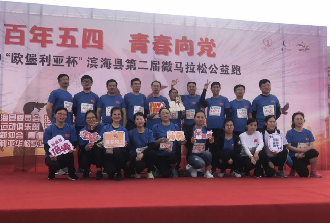 在5月12日上午8點30分開始的百年五四,青春向黨,2019“歐堡利亞杯”濱海縣第二屆微馬拉松公益跑200人參加的青春競速跑(10公里)賽事中,淮海農場有限公司參賽選手李成軍、高燦文、單祥忠等3名選手分獲馬拉松比賽前14、17、20名,淮海農場有限公司有24名選手參加了本次在濱海縣月亮灣參加的馬拉松比賽活動。
