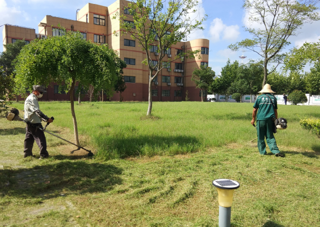 正是由于這些環(huán)衛(wèi)職工不畏熱浪的襲擊,他們的奉獻(xiàn)和一絲不茍的認(rèn)真操作,讓淮海平整、干凈、養(yǎng)眼的綠色的綠化環(huán)境一直呈現(xiàn)在我們眼前。圖為環(huán)衛(wèi)職工在修剪草坪時(shí)的鏡頭。