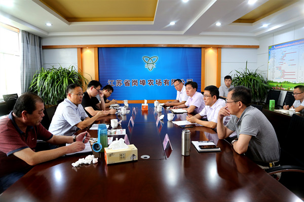 李鋒一行首先現場參觀了崗埠在田水稻和高效農業產業園,聽取了崗埠現代農業產業技術體系、現代農業產業園規劃運營等方面情況介紹,詳細了解崗埠發展的總體規劃、以及項目建設進展等情況。經過60年不斷創新,崗埠已經建成一二三產融合發展的現代化農場,在科研創新、示范推廣、高效農業、規模農業、休閑觀光等發展上邁出了新的步伐,糧食單產逐年上升,如今,小麥單產突破500公斤,產量比建場初期增長了10倍多,水稻單產突破600公斤,糧食總產超過70000萬千克,成為江蘇農墾重要的糧食和種子生產基地。