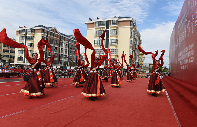 熱烈慶祝中華人民共和國成立70周年和江蘇省淮海農(nóng)場有限公司第十三屆廣場文化節(jié)活動的成功舉辦,掀起了農(nóng)場職工同唱愛國歌的熱潮,也讓廣大職工居民在視聽中,享受著淮海高質(zhì)量發(fā)展帶來的文化盛宴。圖為廣場文化節(jié)部分節(jié)目場景。