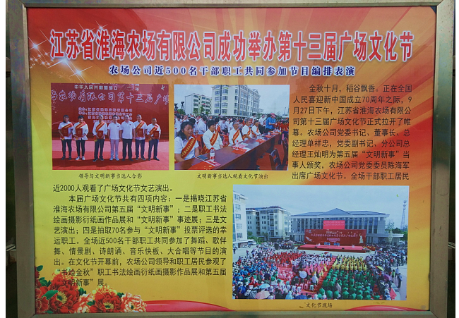 自2015年以來的五屆兩年一度淮海農場有限公司文明新事的組織搜尋工作,一方面為了把符合民意、感人至深“淮海好人”的文明新事舉薦出來,促進農場精神文明創建工作再上新臺階,淮海農場干部職工和當地居民積極通過多舉措,來開展淮海農場身邊好人線索的推薦工作,有力地擴大了“淮海好人”的影響力。另一方面大力宣傳和弘揚已經入選的農場公司文明新事典型,通過在廣場文化節上戴紅花、坐主席臺和登臺接受表彰的形式,進行傳播。同時還借助淮海大地報、櫥窗、網站、微信公眾號等形式,進行包裝宣傳,以期形成文明新事集成推出的轟動效應。
