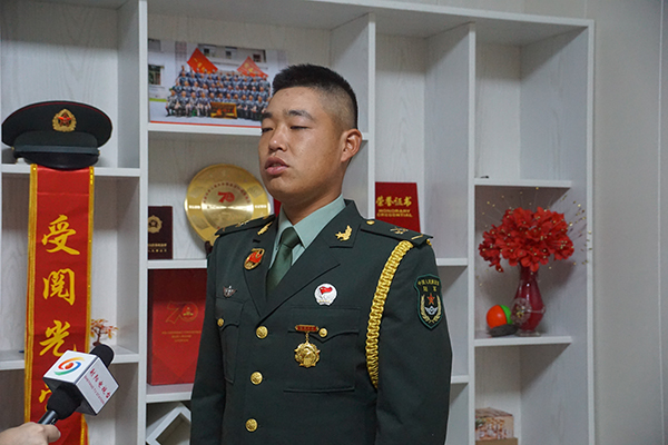 10月15日,參加新中國成立70周年大閱兵的新洋好男兒程晉接受射陽縣融媒體中心專題采訪。