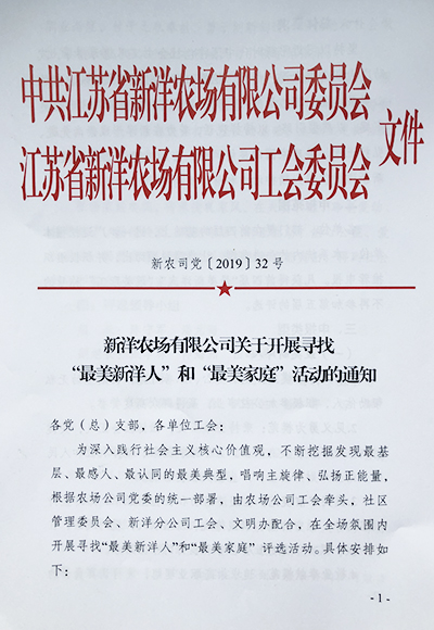 為深入踐行社會(huì)主義核心價(jià)值觀,不斷挖掘發(fā)現(xiàn)最基層、最感人、最認(rèn)同的最美典型,唱響主旋律、弘揚(yáng)正能量,近日,新洋農(nóng)場(chǎng)有限公司在全場(chǎng)氛圍內(nèi)開展尋找“最美新洋人”和“最美家庭”評(píng)選活動(dòng)。