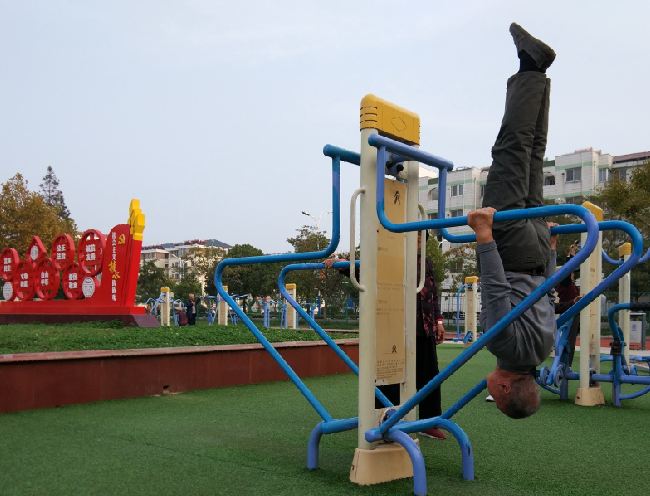 周少彪表示,他從年輕時代就非常喜歡健身,以前農場沒有專門的健身場地時,家中的門框是他的吊環,陽臺扶手是他拉腿肌的道具,墻壁是他練倒立的地方,當然,每天戶外跑步多少年來一直堅持著。周少彪說,現在農場健身廣場建起來后,他每天在雙杠上練上幾分鐘的倒立,常常讓圍觀的人詫異地詢問他的真實年齡,而周少彪最長一次倒立堅持了10多分鐘。“倒立能有效預防神經性疾病的發生,鍛煉大腦的適應能力,自退休后,除了無意中跌過幾次跟頭外,再也沒有上過醫院看病問藥。”周少彪說,靠墻練倒立他一直在家堅持做,而且每次做起來都感覺到很輕松。