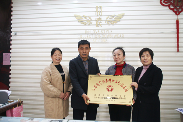11月21日,新洋農場有限公司副總經理、工會主席田峰秀為獲得“江蘇省巾幗來料加工示范基地”的射陽縣云燕制衣廠授牌。社區(qū)、女工委、工會相關人員參加授牌儀式。