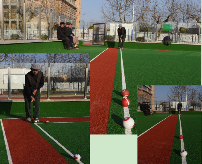這不,今天下午當(dāng)我來到廣場(chǎng)內(nèi)的門球場(chǎng)內(nèi)時(shí),正好有三位老人圍坐在一邊看林耀國打球。