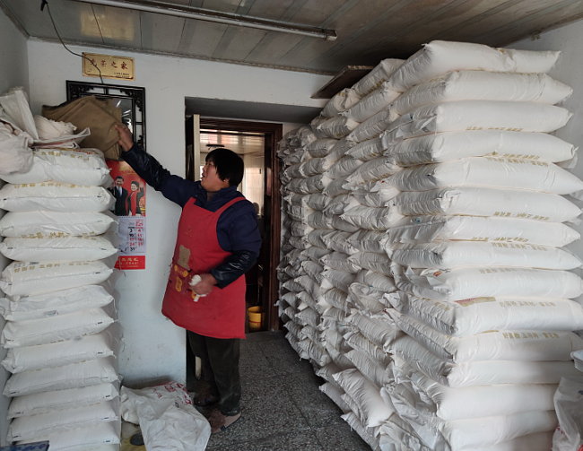 話不多說了,12月30日,是賈長梅家今年新年蒸饅頭開始的日子,我們在現場看到,陳為國夫婦又開啟了新一年的忙著洗蒸籠抹灶具,曬簾子的準備工作,熱氣騰騰的饅頭香味又將在賈長梅家的店鋪飄起,讓我們大家有所期待吧。圖為賈長梅家中堆積待加工的面粉。