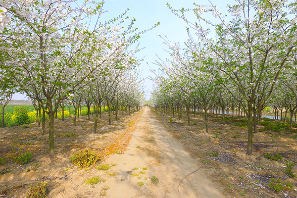 綿延萬米,花開百日。喬木化高桿紫薇和金葉女貞相映成輝的林苗景觀蔚為壯觀,成為綠色原野上一道靚麗的風景線。穿行在如畫的花路之中,讓人如癡如醉。