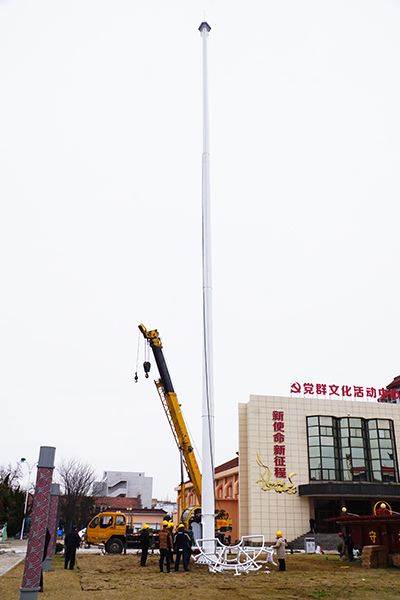 1月10日上午9時30分,在新洋農場黨建文化廣場,塔吊車將一根碩大的高桿燈吊起、嵌入,再由施工人員固定、調試。下午4時30分,“安裝、調直、測試完畢!”隨著工程師大聲宣布,LED高桿燈安裝完畢,隨即,高桿燈調試成功的喜訊在農場干群中迅速傳開,大家為新洋黨委這一亮化民生工程紛紛點贊。