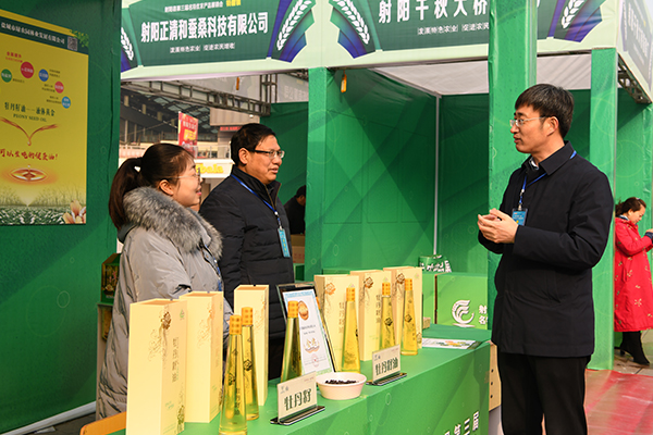 1月17日,臨海農場公司牡丹籽油等特色農產品在射陽縣第三屆名特優農產品展銷會上驚鴻再現,江蘇省臨海農場有限公司董事長朱明亮應邀出席并與射陽縣副縣長徐加曄等領導一同巡展。