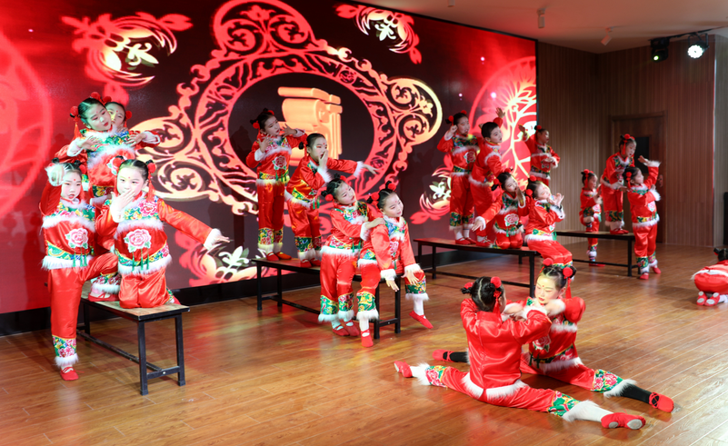 年會在黃海小學生表演的舞蹈《《姥姥門前過大年》中拉開帷幕。