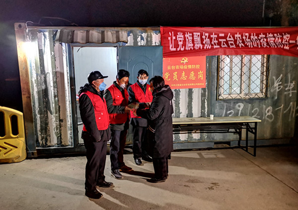 寒冷抵擋不住內心的火熱,一碗熱氣騰騰的湯圓溫暖了這個夜晚。云臺農場檢查站點現場的黨員和志愿者們常說的一句話是,“我們是黨員,要責無旁貸地為群眾筑牢生命防線。”平凡的一句話,是黨員堅守一線的承諾,他們用實際行動,為人民群眾生命健康安全構筑起了阻擊疫情的堅固屏障。鮮艷的黨旗,飄揚在疫情防控第一線,也飄揚在全場職工群眾的心里。