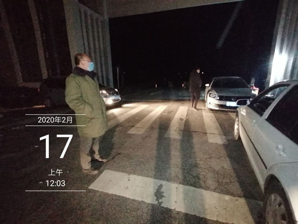 2月17日凌晨12:01分,堅(jiān)守在農(nóng)場(chǎng)南大門(mén)的侯繼兵、李澤宇、張宇看到車(chē)亮迅速?gòu)能?chē)?yán)锍鰜?lái)進(jìn)行攔截,雖是下半夜,人已處于極度困倦的狀態(tài),但他們沒(méi)有“躲”在帳篷里,而是將車(chē)停在大門(mén)兩側(cè),隨時(shí)準(zhǔn)備著攔截過(guò)往車(chē)輛。一場(chǎng)春雪過(guò)后,夜,特別的冷,他們用堅(jiān)守好南大門(mén)筑起了三河平安健康的嚴(yán)密防線(xiàn),為打贏這場(chǎng)新冠肺炎疫情阻擊戰(zhàn)默默的堅(jiān)守、堅(jiān)持,讓我們向堅(jiān)守在防控一線(xiàn)的他們致敬,道一聲你們辛苦了,說(shuō)一聲謝謝你們。相信有你們、有全體三河人民的共同努力,三河的春天一定是春花爛漫。