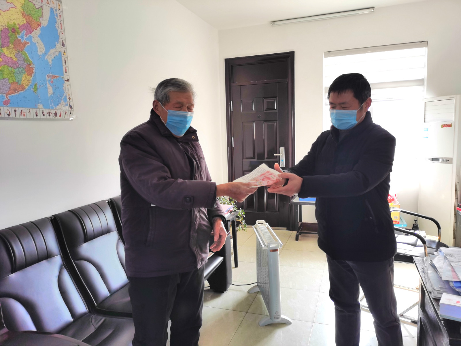 3月3日,寶應湖農場公司老黨員楊長奉來到他所在的劉圩老干部黨支部,向黨組織遞交了一封信和500元捐款。