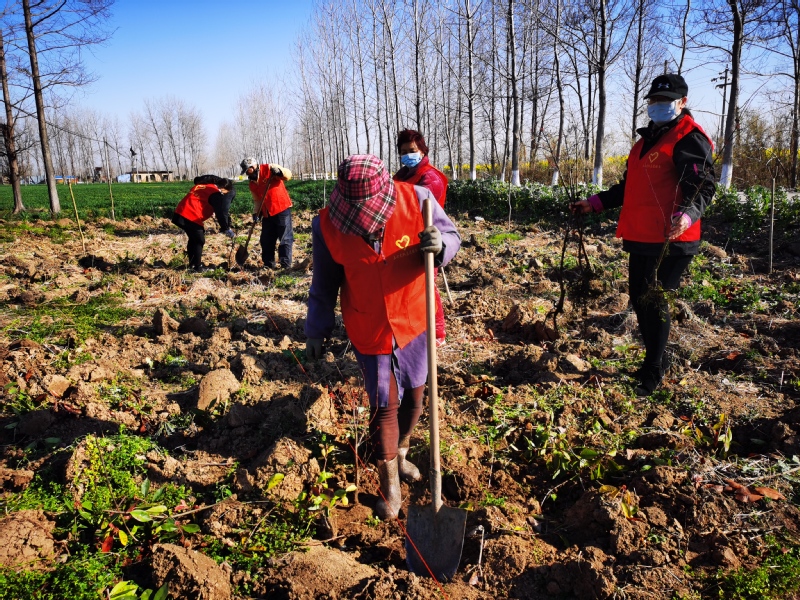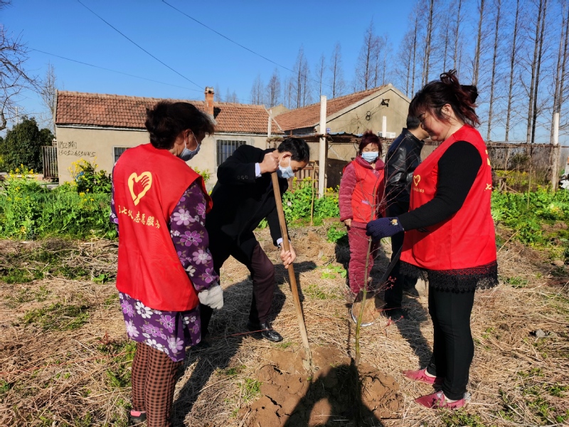 3月20日上午8時,寶應湖農場五七大隊居民點,十余名志愿者身穿紅馬夾,你拉線、我挖塘、他扶樹,正干得熱火朝天。