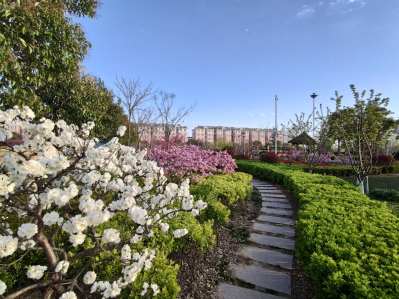 連日來,隨著疫情消散,氣溫回升,淮海公園內被鮮艷的花卉、翠綠的苗木等裝點一新,石楠的紅葉、桃紅色的桃花、乳白色的桃花、淡紫化的紫荊、淡黃色的垂柳、青綠的松柏、冬青的綠中泛黃等景色,輔助于公園內的長廊、石山、小橋、亭臺、河流等的點綴,讓農場社區的職工居民每天置身于色彩斑斕的花海中,既享受著多彩春天的魅力,又體味到生態綠色淮海給大家帶來的休閑氣息。