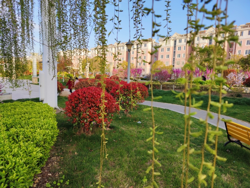 連日來,隨著疫情消散,氣溫回升,淮海公園鮮艷的花卉、翠綠的苗木等裝點一新,石楠的紅葉、桃紅色的桃花、乳白色的桃花、淡紫化的紫荊、淡黃色的垂柳、青綠的松柏、冬青的綠中泛黃等景色輔助于公園內的長廊、石山、小橋、亭臺、河流等的點綴,讓農場社區的職工居民每天置身于色彩斑斕的花海中,享受多彩春天的魅力,又體味到生態綠色淮海給大家帶來的休閑氣息