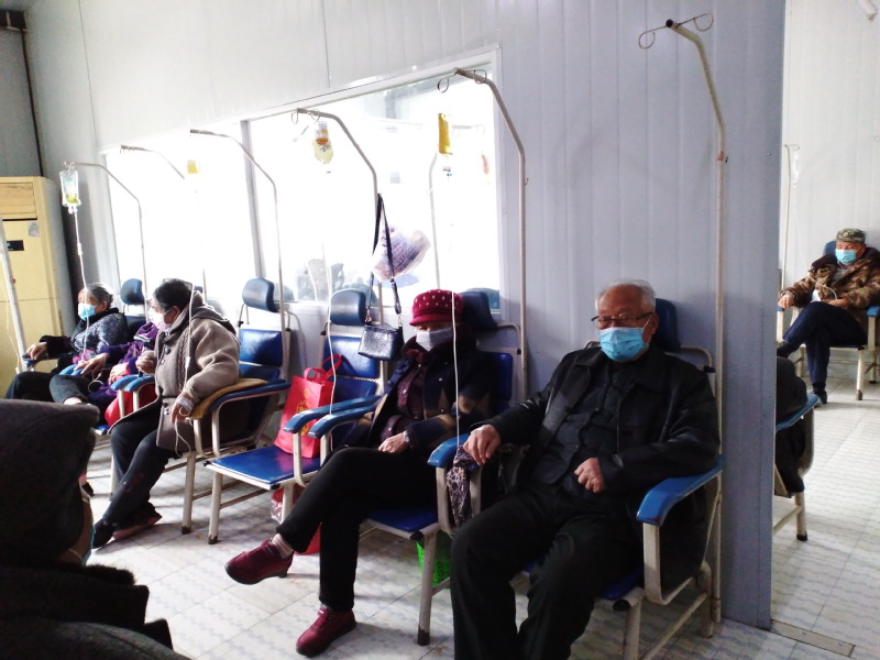 而當我們走入輸液室中之時,發現雖然在這里輸液掛水的老年居民較多,但無論是患者,還是陪護人的,大家都很自覺地佩戴著口罩,靜靜地坐在椅中掛水,也沒有多少喧嘩。即便大家說話時,也是在彼此聽得見聲音的聲唄里,看得出大家都是自覺的人。
