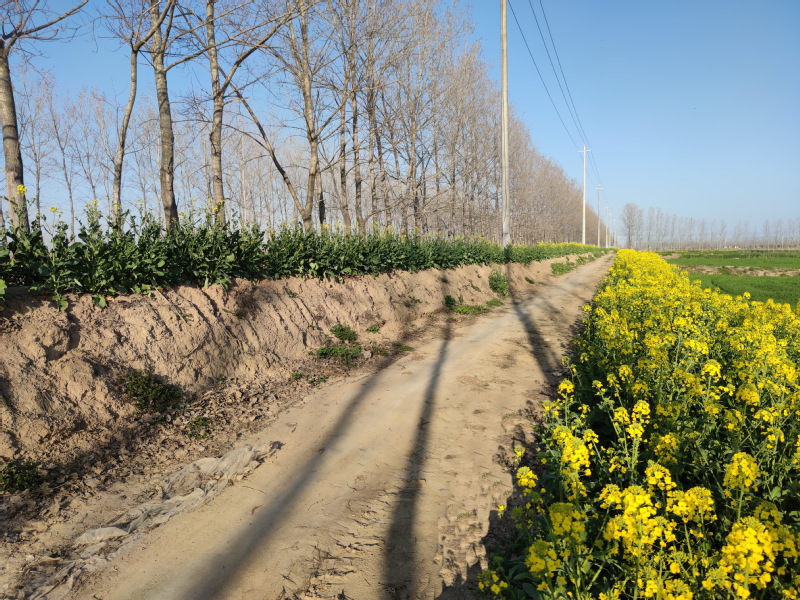 在淮海,真正利用大田和宜機械化種植的林地從事油菜種植的面積極少,大家一般都發展勞動力投入使用較少的小麥種植,所以,為了增加這些不宜機械化經營和碎片化十邊隙地的種植,大家利用勤勞的雙手和對美好生活的向往,積極發展技術程度低的大眾化油菜種植,讓家前屋后、溝邊渠塘等十邊隙地上產生了較好的效益。圖為十邊隙地上種植的油菜植物。