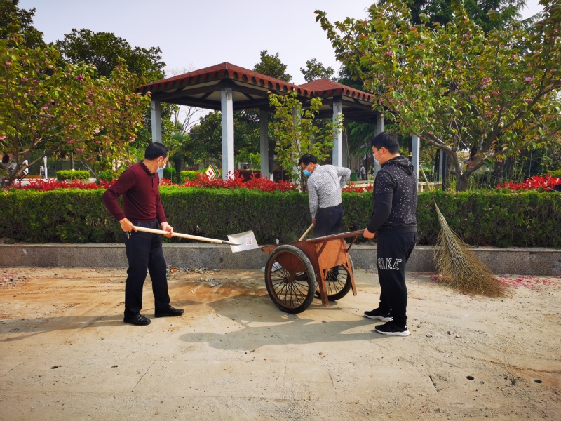 4月15日,農場公司召開環境衛生大掃除會議,對活動進行詳細布置,17日,機關、社區黨員干部率先帶頭垂范,拿起鐵鍬、掃帚,奔赴勞動現場。大隊、居委會也有序組織職工居民參與活動,在全場迅速掀起開展愛國衛生運動打贏新冠肺炎防控阻擊攻堅戰的熱潮。