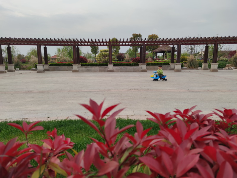 淮海路兩旁香樟樹的綠、紅葉石楠的紅和路邊公園中的特色苗木花朵,讓農(nóng)場這一美麗的大道裝扮得格外漂亮;神禾路旁的廣玉蘭、紅葉李、紅葉石楠就是一堵墻,既安全又養(yǎng)眼,為沿線的別墅平添了一處變幻的風(fēng)景;創(chuàng)業(yè)路上的法國梧桐,撐開著巨大的臂膀,綻放起青綠的樹葉,在迎接夏天到來中,為人們帶來一處蔭涼;淮海公園內(nèi)視線所極之處,滿園都是新綠,淺黃的嫩芽生機(jī)勃發(fā),各色鮮花爭相斗艷,把職工居民游玩的公園裝扮得分外妖嬈,給人們帶來心曠神怡的感受。那些孩子們跑著、笑著、樂著,或在大人的陪伴下游走,或三五成群地聚集,盡情地無憂無慮地擁抱著春天。