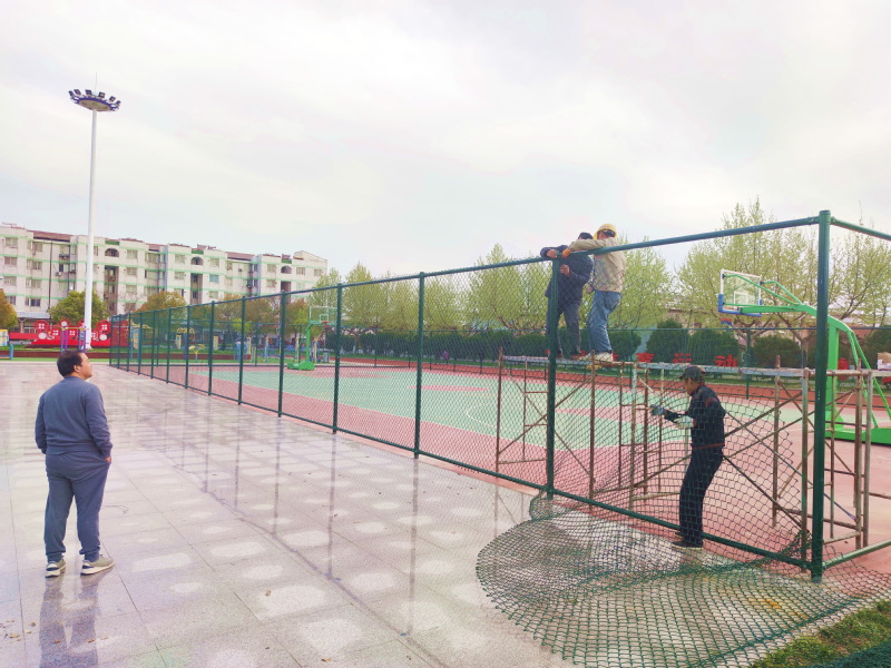 為營(yíng)造安全有序的健身環(huán)境,提升職工居民的運(yùn)動(dòng)健身質(zhì)量,4月21日,淮海職工休閑體育運(yùn)動(dòng)廣場(chǎng)塑膠籃球場(chǎng)周邊,有3名安裝人員正在安裝籃球場(chǎng)防護(hù)網(wǎng),3米高的球場(chǎng)防護(hù)網(wǎng)的配置,在提升籃球場(chǎng)檔次的同時(shí),可以大幅度地減少打籃球、跳舞蹈、塑膠跑道散步和器材健身等健身運(yùn)動(dòng)的相互妨礙,讓參與運(yùn)動(dòng)的職工居民在安全的健身環(huán)境下運(yùn)動(dòng),讓大家享受著健康體育生活的美好。圖為安裝人員正在加裝防護(hù)欄時(shí)的鏡頭。