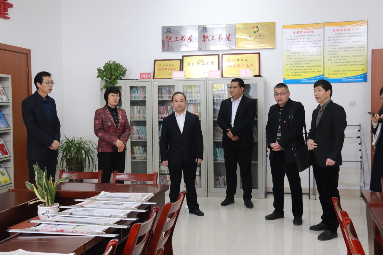在世界讀書日到來之際,4月23日,海門市總工會主席姜敏一行蒞臨江心沙農場檢查指導工作并座談,黨委書記、董事長朱江勝,總經理、社區管委會主任薛忠,紀委書記嚴建文、工會副主席蘇勇參加。