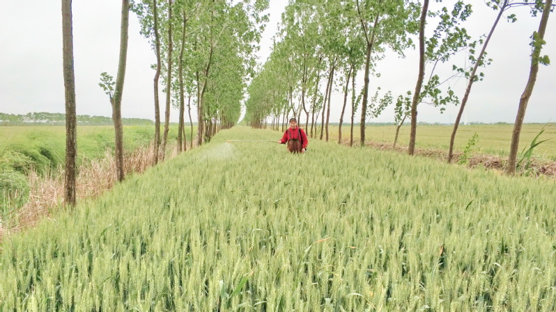 穿行在農(nóng)田前的泥路上,看到一條條林間種植的小麥從眼前移過,讓有著農(nóng)田情結(jié)的我欣喜萬分。隨著農(nóng)場林網(wǎng)化及林下小麥經(jīng)濟(jì)帶的打造,農(nóng)場的林下麥田更能夠讓種植者,也能讓來田間觀光的游客“養(yǎng)眼、養(yǎng)胃、養(yǎng)心”。雖然在田間地頭,我們看到的是尋常無二的農(nóng)田風(fēng)景,但種糧的人心中都有一本賬,他們收獲的更是滿滿的好心情。