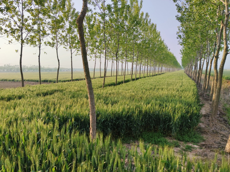 沒曾想,到了田間一看,農(nóng)田里的麥苗風(fēng)景自不必說,而且林地下的抽穗小麥,在樹木的映襯下更是讓人養(yǎng)眼,青綠的樹葉、黃褐色的干,淡黃的麥穗、綠油油的莖桿,加上兩邊大片大片的農(nóng)田,呈現(xiàn)給我們的是一派生機(jī)盎然的豐收景象。