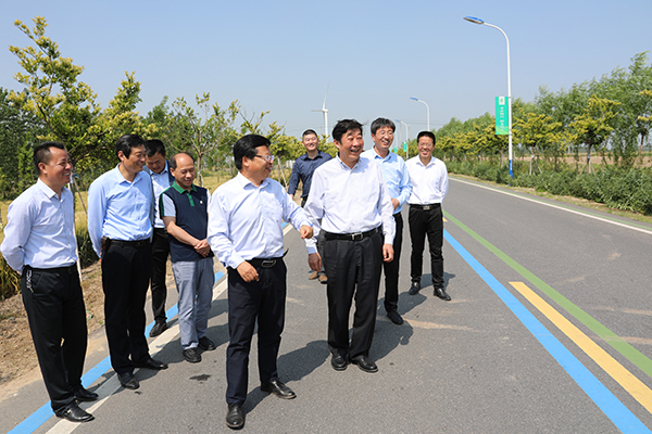 胡兆輝首先來到臨海林苗一體化項目區(qū)5009公路“鶴鄉(xiāng)綠徑”及蘇墾米業(yè)臨海米廠擬建倉儲項目區(qū)調(diào)研,肯定了臨海林業(yè)的發(fā)展。他在二生產(chǎn)區(qū)踏田察看了稻麥超高產(chǎn)栽培及配套技術(shù)千畝示范片的麥子長勢、長相,了解臨海麥田管理及三夏工作的開展情況;在三生產(chǎn)區(qū),對蘇墾農(nóng)發(fā)智慧農(nóng)業(yè)園項目區(qū)及配套設(shè)施建設(shè)和綠化規(guī)劃情況作了詳細(xì)了解。在四生產(chǎn)區(qū),胡兆輝步入正在收割的麥田,仔細(xì)察看麥田機械收割情況,又來到微噴灌育秧的秧畦邊細(xì)心察看、了解水稻育秧及無人機飛防情況。他勉勵現(xiàn)場工作的年輕農(nóng)技人員,希望他們努力在干事創(chuàng)業(yè)中成長。