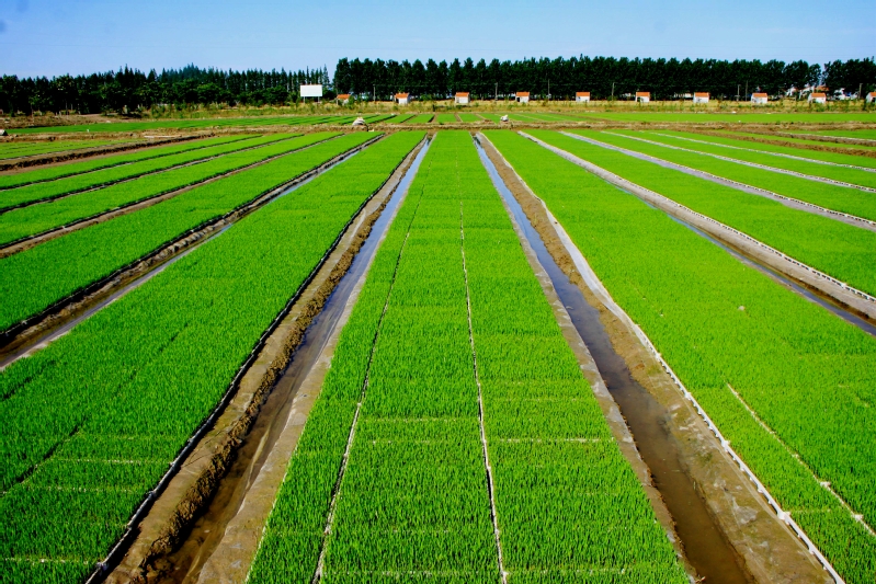 新洋分公司是江蘇農墾首家全面實行機械插秧的單位,10多年來他們不斷總結機械落谷和育秧的的經驗,科學的管好秧苗移到秧池后的水肥管理和病蟲害的防治,確保育大苗、育壯苗。各大隊所育的秧苗一片蔥綠,只待大麥收割后即可耕田整田后插秧。