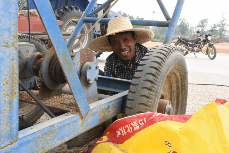 據悉,在淮海農場有限公司,不僅田間的農機化覆蓋率達到了98%,糧食場頭的農機使用也全部替代了人工操作,實現了從收放場、輸送等全程機械化,為場頭不再是人工聚集勞作的場所。但即便如此,農場各農業單位場頭的農機從業人員也不敢放松農機的操作安全,他們與農業單位的領導簽定了場頭農機安全作業責任狀,加強了場頭農機的事前控制、事中管理和事后檢修機制,切實做好農機安全生產作業準備,確保農機具和機手以良好的狀態投入場頭生產,通過自主性地開展安全隱患排查行動,以提升自身在生產過程中的安全意識,把農機安全消滅于無形當中。圖為李中明正在夏日下檢修場頭機械。