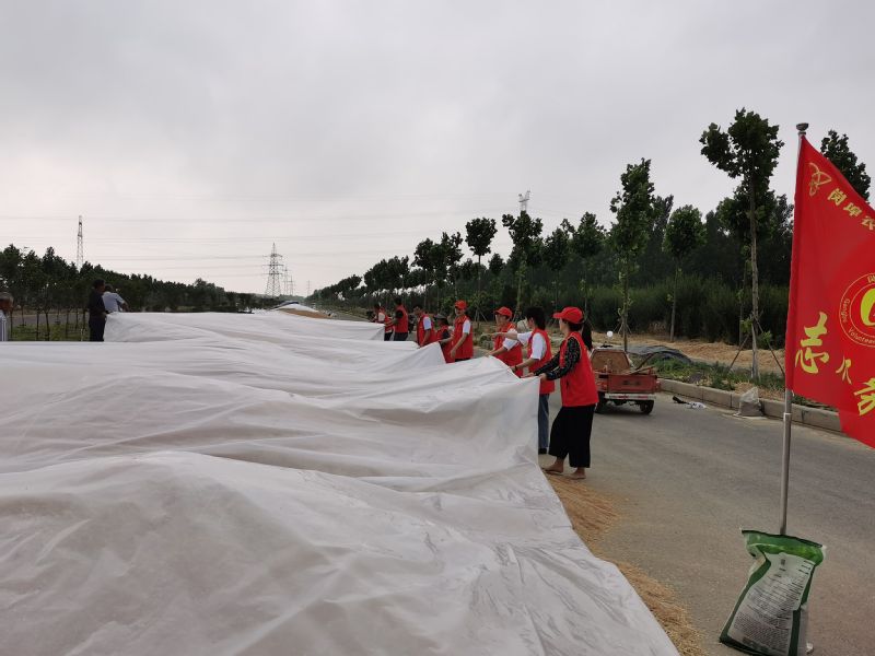 望著已經(jīng)蓋好的小麥,志愿者們擦擦頭上的汗水,露出了欣慰的笑容……