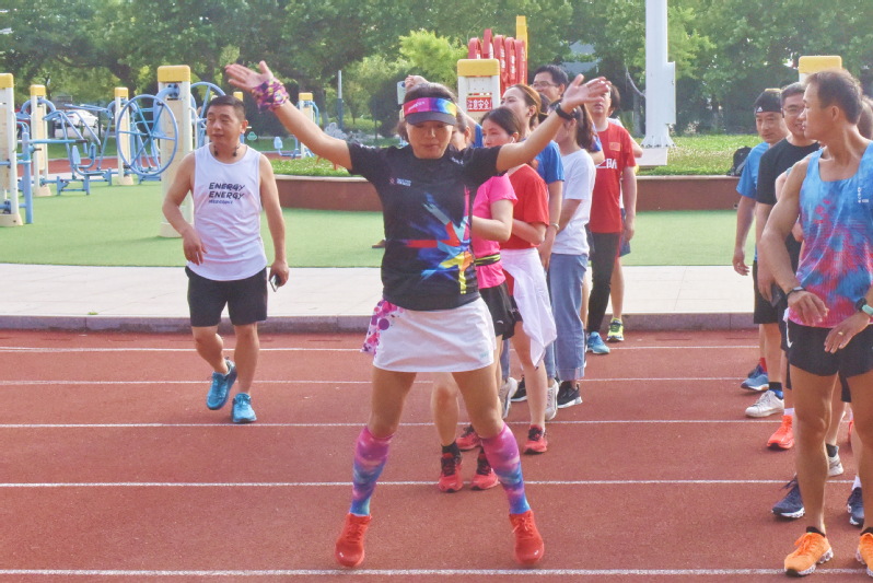 勇往直前,只為攀登。吃過(guò)苦受過(guò)累,方知平淡生活的幸福和甜蜜。圖為蔡霞在馬拉松長(zhǎng)跑前進(jìn)行隊(duì)前熱身。