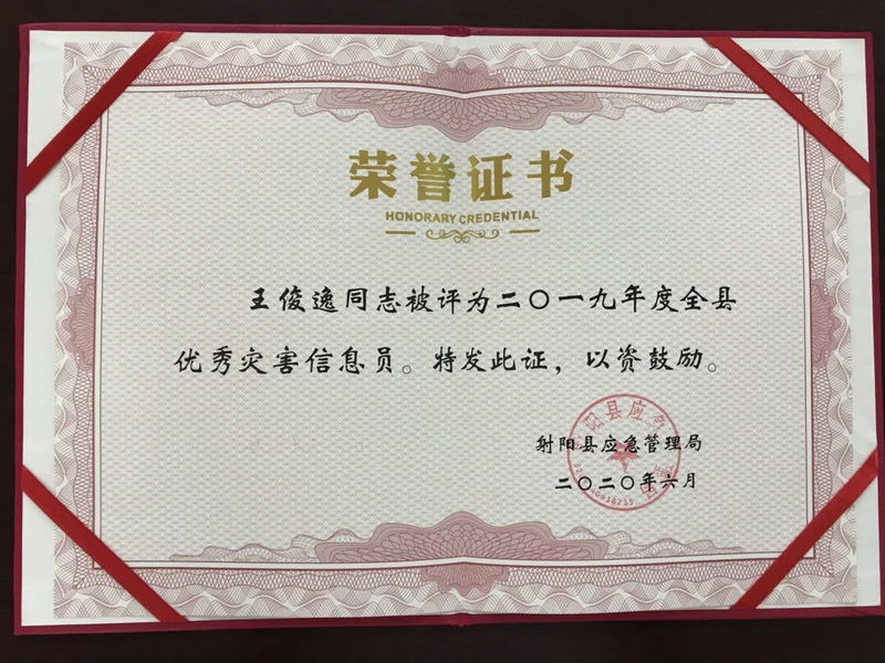 近日,在射陽縣舉辦的2020年度全縣災(zāi)害信息員暨全國綜合減災(zāi)示范社區(qū)創(chuàng)建業(yè)務(wù)培訓(xùn)班上,新洋農(nóng)場社區(qū)王俊逸獲得“2019年度射陽縣優(yōu)秀災(zāi)害信息員”的榮譽(yù)稱號(hào),并受到表彰。