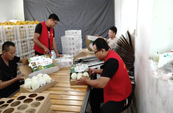 在梨園,志愿者們忙著運輸、分揀、包裝,分工協(xié)作、相互配合,緊張有序地投入到活動中。雖然天氣悶熱,但大家干勁十足,短短的數(shù)日,數(shù)千箱梨果禮盒打包銷往各地。