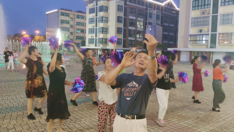 “我們要學會快樂才能懂得快樂!快樂是一種心理感受。要不要快樂由你自己決定。懂得快樂、善于快樂實在是一種智慧、一種氣度、一種氣魄。”目前他拍攝的抖音作品有歌曲、有小品、有游記、有說唱、也有風景,也讓越來越多的職工居民或網絡上看過吳建龍作品的人,從他的經歷、他的生活和他的快樂體驗上,來重新描繪自己的人生目標,畢竟一個人的快樂對當前講究健康理念和生活質量的人們來說,快樂對一個人才是至關重要的。圖為吳建龍在淮海文化廣場前拍攝創作抖音作品時的鏡頭。