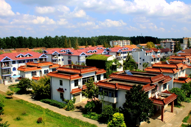 改革開放后,新洋農場經濟發展步入了快車道,職工的收入年年增長。上世紀90年代,農場場部進行了大規模的住房改造,五、六十年代建造的舊平房退出了歷史舞臺,隨之而起的是一座座新穎別致的住宅樓,新洋人也象城里人一樣住進了水衛設備齊全、裝潢考究的樓房。為了讓一部分帶頭富裕起來的職工能夠住得更好更寬敞些,于是就出現了別墅村。站在機關辦公樓三樓走廊的窗戶向東北眺望,連片的別墅盡收眼底,讓你真切的感受到,改革開放中新洋人用智慧和勤勞送走了貧窮和落后,迎來的了富庶和幸福。當年種下的小樹已長大,一座座紅瓦白墻的別墅掩映在綠樹叢中,和諧,協調。誰不說咱家鄉好,誰不贊我新洋美。