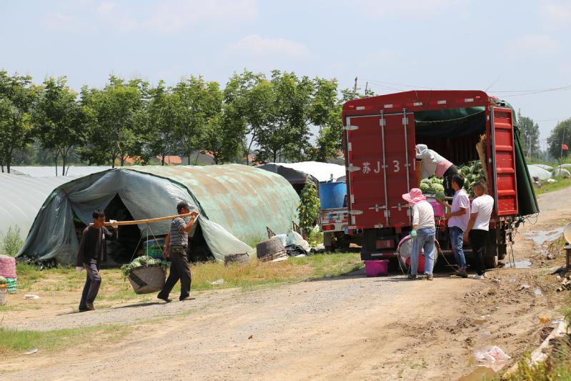 因保護土壤結構不使鹽堿上升對土地實行水旱輪作的需要,新洋分公司將耕地分期承包給瓜農種植西瓜。這些瓜農種植西瓜很有經驗,種植的西瓜口感好,甜度適中,深受客戶青睞。前一階段因受疫情影響,給西瓜銷售造成了一定的困難。隨著疫情的好轉,西瓜銷售由滯轉暢,價格也一路看好,瓜農一個個喜笑顏開。
