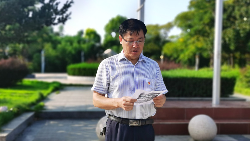“今天,我們致敬先輩,致敬那群拋頭顱、灑熱血的人民英雄,致敬那場永不妥協的抗爭,致敬今日在風雨中昂首向前的中國,更提醒你我:勿忘歷史,珍愛和平!殷憂啟圣,多難興邦!振興中華,吾輩自強!”兩名入黨積極分子站在國旗下作了《抗戰勝利紀念日--銘記歷史 砥礪前行》精彩演講。